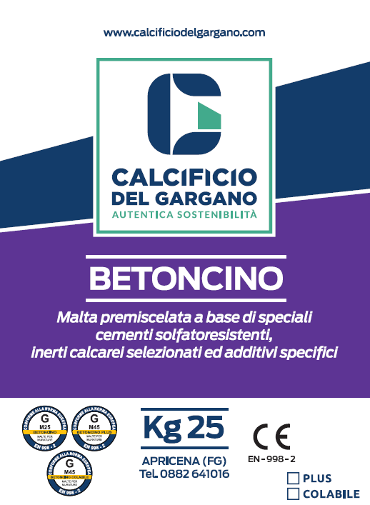 Betoncino PLUS  è una malta premiscelata fibrorinforzata pronta all’uso, formulata con cemento portland ad alta resistenza, additivi specifici ed