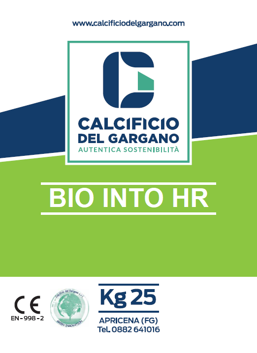 BIO INTO HR è un intonaco premiscelato con pura Calce Idraulica Naturale (NHL), fibrorinforzato (GP) polimero modificato,